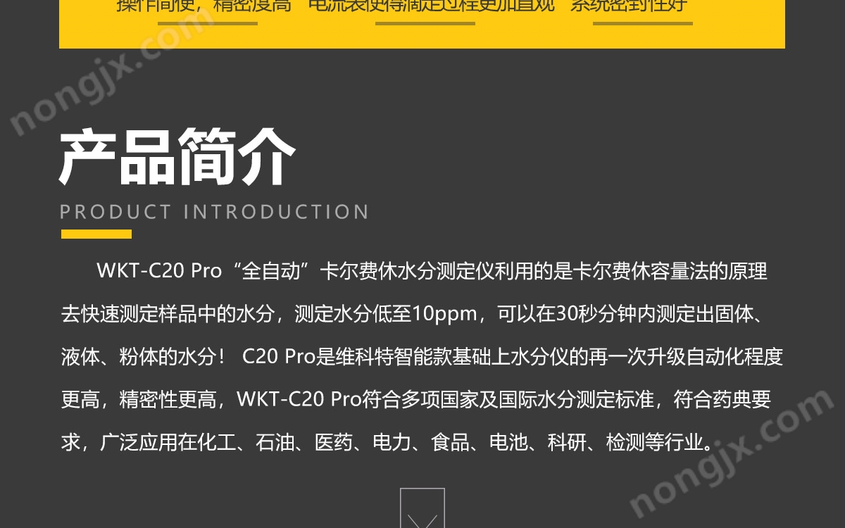 WKT-C20Pro型自動(dòng)卡爾費(fèi)休水分測定儀應(yīng)用于一切需要快速測定水分的行業(yè):例如高校、科研院所、質(zhì)檢機(jī)構(gòu)、制藥、化工企業(yè)、化肥、農(nóng)藥、染料、涂料、食品飲料、表面活性劑、化妝品等行業(yè),適用于原料、樣品的中間體及成品檢測。