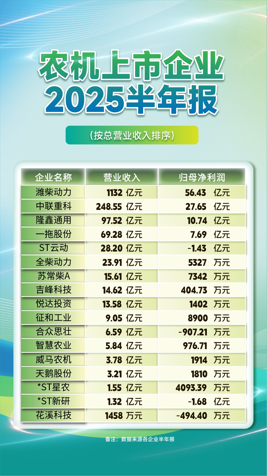 業(yè)績速覽!17家農(nóng)機(jī)上市企業(yè)2025半年報匯總