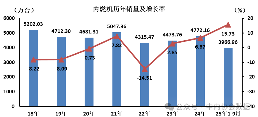2025年9月內(nèi)燃機行業(yè)銷量506.9萬臺,同比增長21.14%