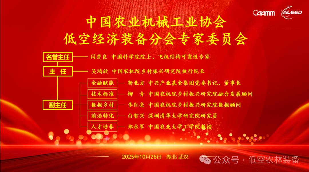 2025年10月26日,中國農業(yè)機械工業(yè)協(xié)會低空經濟裝備分會成立大會暨2025中國低空農業(yè)裝備產業(yè)發(fā)展論壇在湖北武漢成功舉辦。本次大會由中國農業(yè)機械工業(yè)協(xié)會主辦,低空經濟裝備分會(以下簡稱“分會”)、中國農機院鄉(xiāng)村振興研究院、中國農業(yè)展覽協(xié)會數智鄉(xiāng)村低空產業(yè)委員會聯(lián)合承辦,吸引了政府代表、行業(yè)專家、企業(yè)領袖及科研人員等百余人齊聚一堂,共同見證這一行業(yè)里程碑時刻。