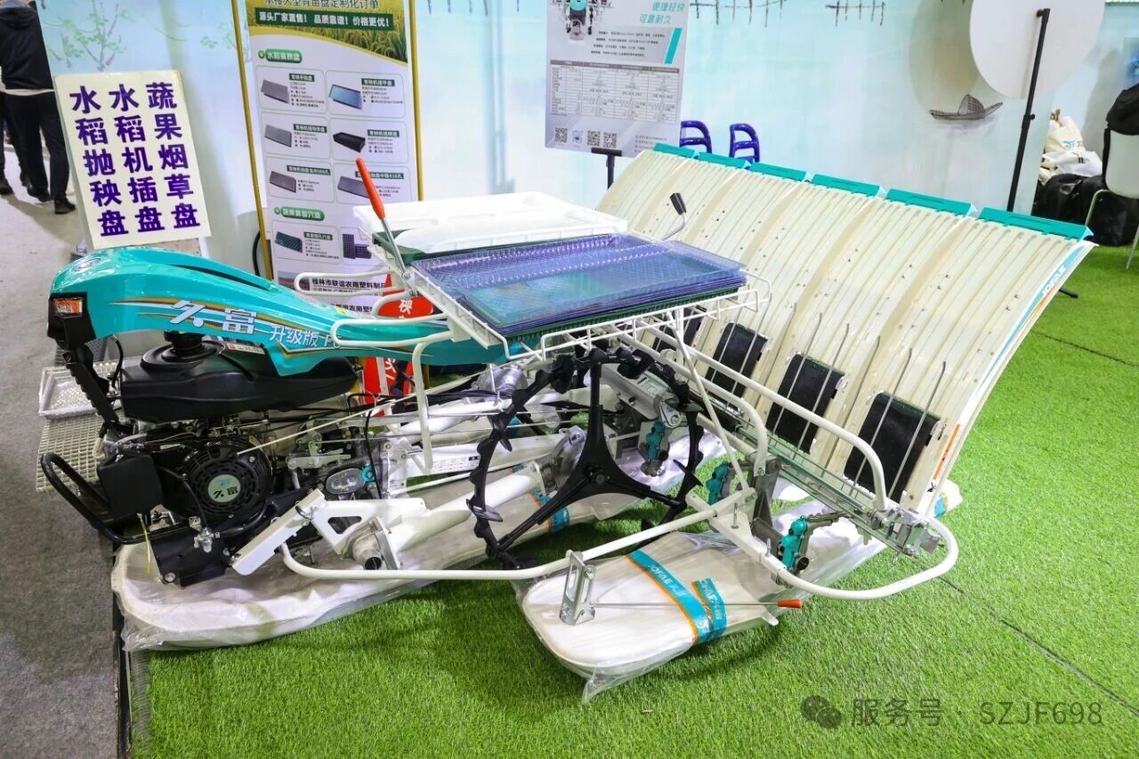 久富增產(chǎn)型缽毯兩用六行手扶插秧機(jī)升級版產(chǎn)品也吸引了眾多參展者的目光。這款插秧機(jī)在傳承之前先進(jìn)設(shè)計(jì)理念、強(qiáng)勁動力系統(tǒng)和獨(dú)特缽苗輸秧控制系統(tǒng)的基礎(chǔ)上,進(jìn)行了全面的優(yōu)化升級。外觀上更加精致美觀,符合現(xiàn)代審美需求;油箱容量增大,延長了作業(yè)時間;取苗量更加精準(zhǔn),確保了秧苗的均勻分布;轉(zhuǎn)向系統(tǒng)更加靈活,操作更加輕松省力。這些升級改進(jìn)使得插秧機(jī)在作業(yè)過程中更加精準(zhǔn)、高效,為農(nóng)民朋友帶來了實(shí)實(shí)在在的便利和效益。