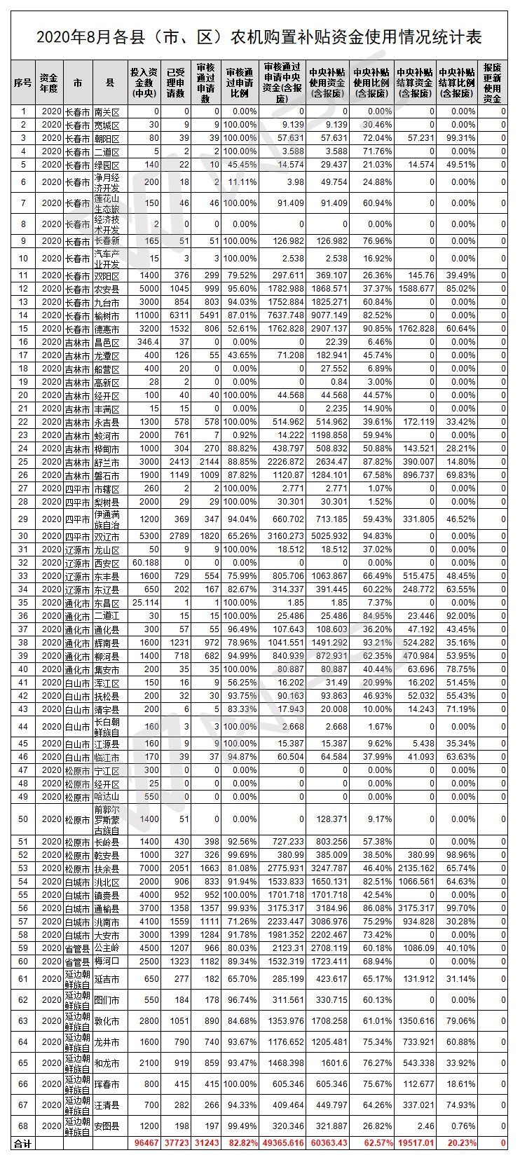 進展較慢的市區(qū)有四平市轄區(qū)、梨樹縣、遼源市西安區(qū)、靖宇縣、長白縣、松原市寧江區(qū)、經開區(qū)、哈達山區(qū)、前郭縣等,其中個別縣市資金使用仍為零。